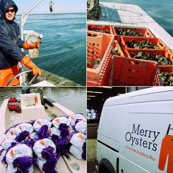 A few days a month, Duxbury has tides that allow us to hand pick oysters from our grant, but most days we harvest using a dredge that drags behind the boat. The harvested oysters are brought to the processing site and culled. Size, weight, and shape are all considered when sorting through these plump prawns. The marketable oysters are put into 100 count bags and put on ice or refrigerated until delivery. Merry Oyster’s refrigerated van makes the trek to the fish pier in Boston where Legal Sea Foods then distributes the bags across it’s 35 restaurants. If you find yourself in a Legal Sea Foods, be sure to try Merry Oysters and enjoy a taste of Duxbury Bay. You can now purchase our quality oysters online during the months containing the letter "R". Be sure to check out our online shop for more information!